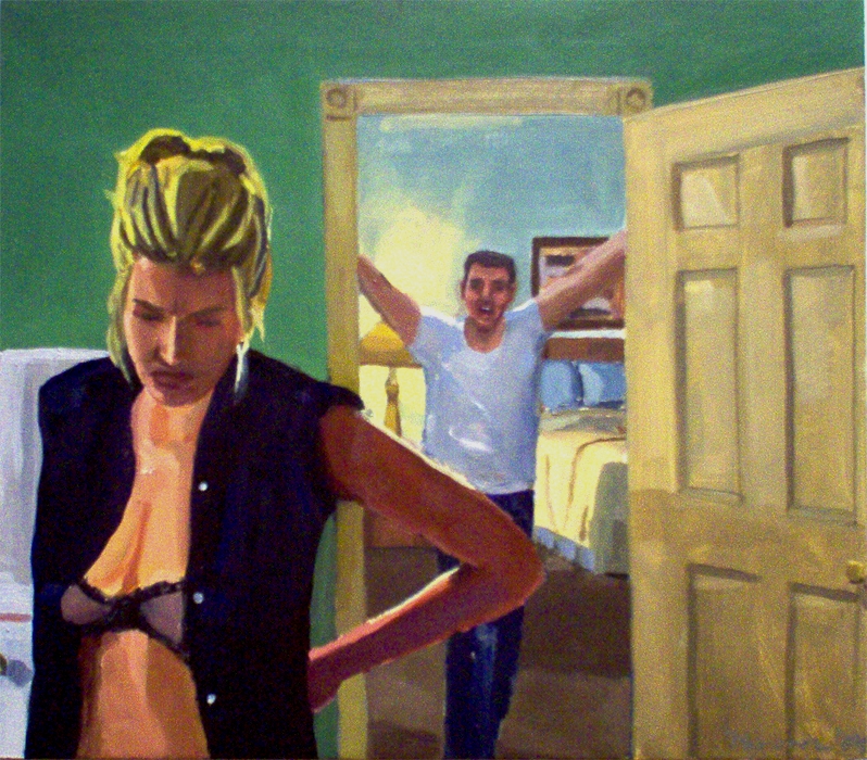 Pajama Game, 14×20″, oil on panel, 2004, 1,200